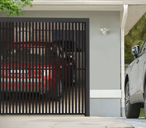 Este portão, com aberturas verticais, possibilita a passagem de luz natural e fluxo de ar. Seu modelo otimiza o espaço, proporcionando praticidade e segurança, enquanto confere sofisticação ao imóvel.